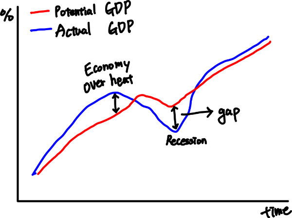 Between those gaps, we can control or make some policies by measuring the recession and overheating. Potential GDP can be viewed as the economy's speed limit. Then what determines potential GDP?